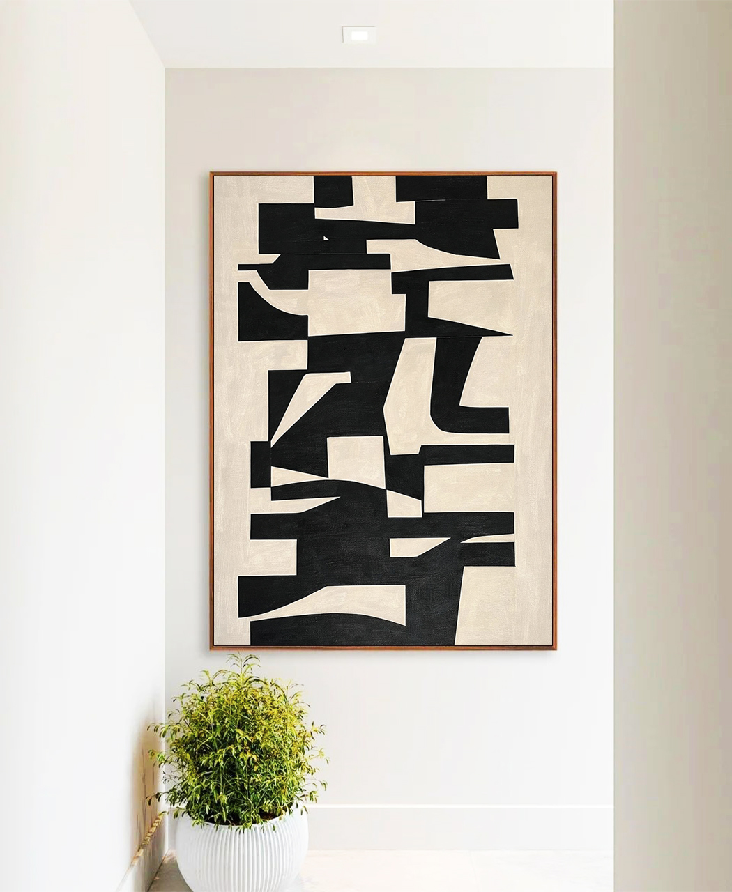 Traços minimalistas e geométricos em preto e marfim criam um visual elegante e equilibrado. Ideal para salas, escritórios e ambientes que buscam sofisticação, ordem visual e estética contemporânea.