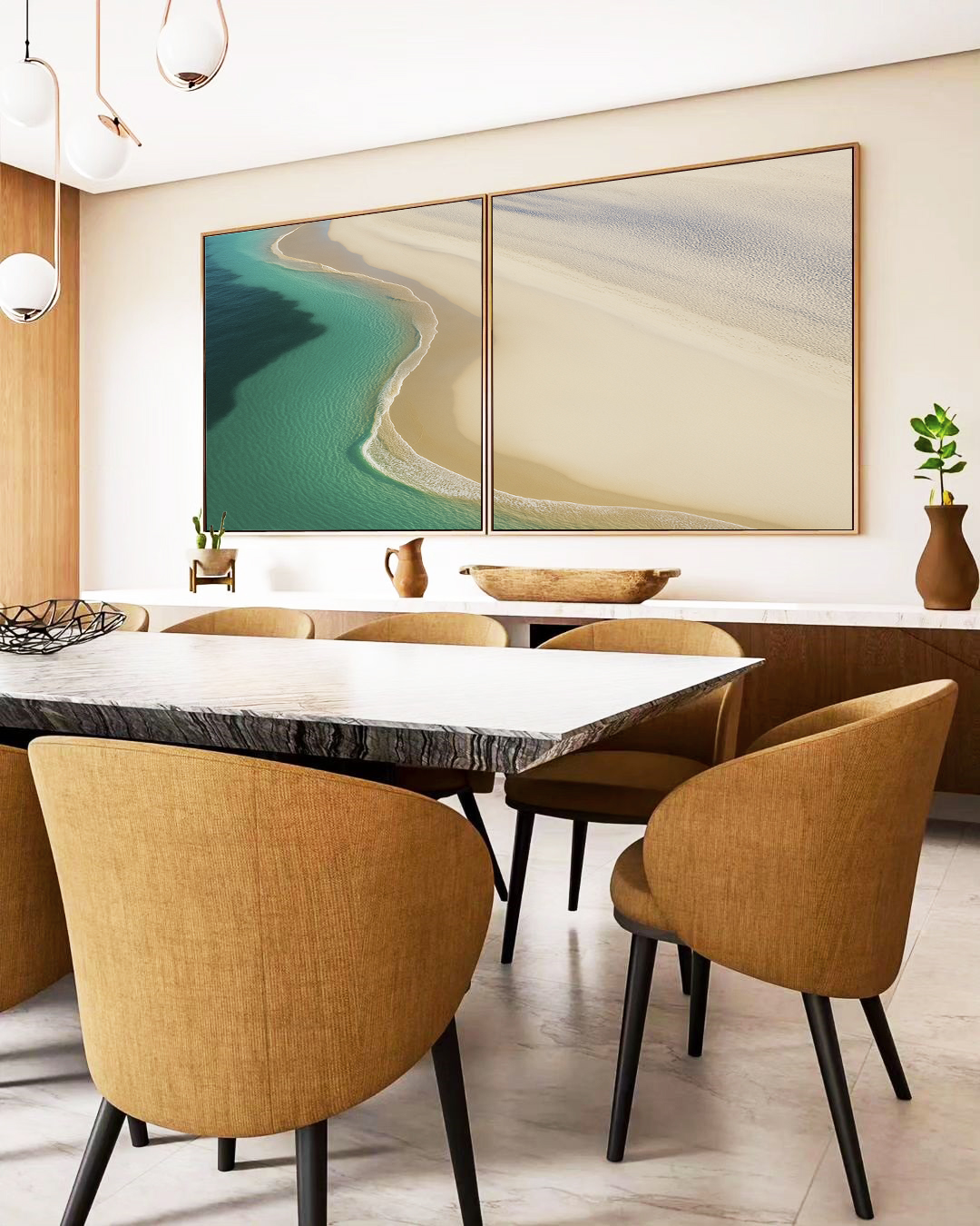 Calmo e luminoso, este Duo de Quadros Quadrados de praia com mar turquesa e areias brancas cria um ponto focal harmonioso e elegante. Ideal para compor salas sofisticadas, quartos serenos, escritórios elegantes ou halls de entrada imponentes.