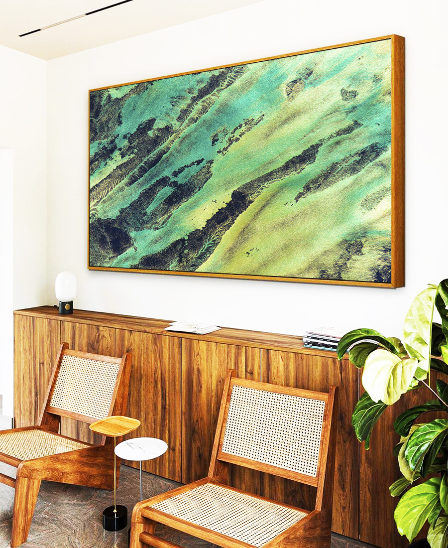 Com nuances de cinza e toques vibrantes de verde turquesa, este Quadro Horizontal traz frescor e estilo contemporâneo ao ambiente. A escolha certa para realçar salas, quartos ou escritórios com arte abstrata marcante e visualmente harmoniosa.