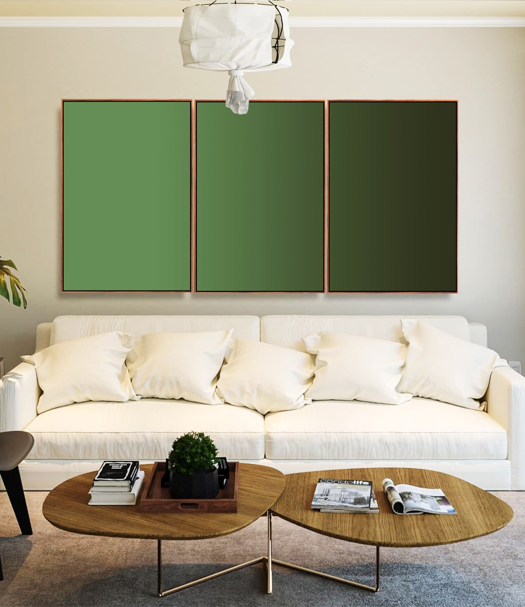 A transição suave de tons de verde escuro transmite equilíbrio e serenidade. Perfeita para salas de estar, dormitórios e ambientes contemporâneos que valorizam conforto visual e estética orgânica.