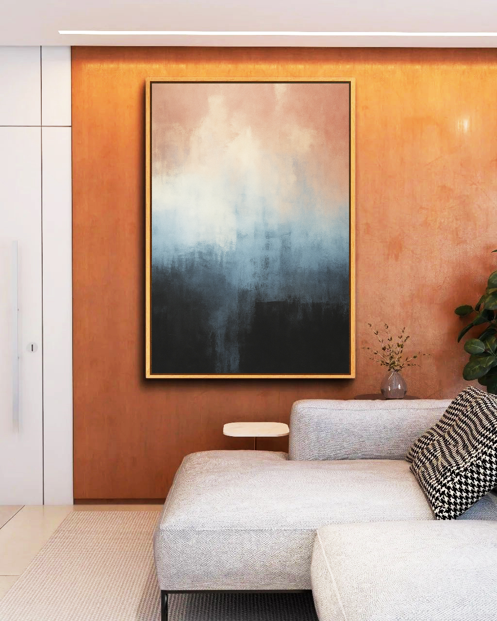 Delicadeza e intensidade se encontram neste Quadro Vertical abstrato que mescla rosa antigo e azul escuro em um degradê artístico. Um Quadro elegante e atemporal, ideal para realçar sua sala, quarto ou hall com sofisticação contemporânea.