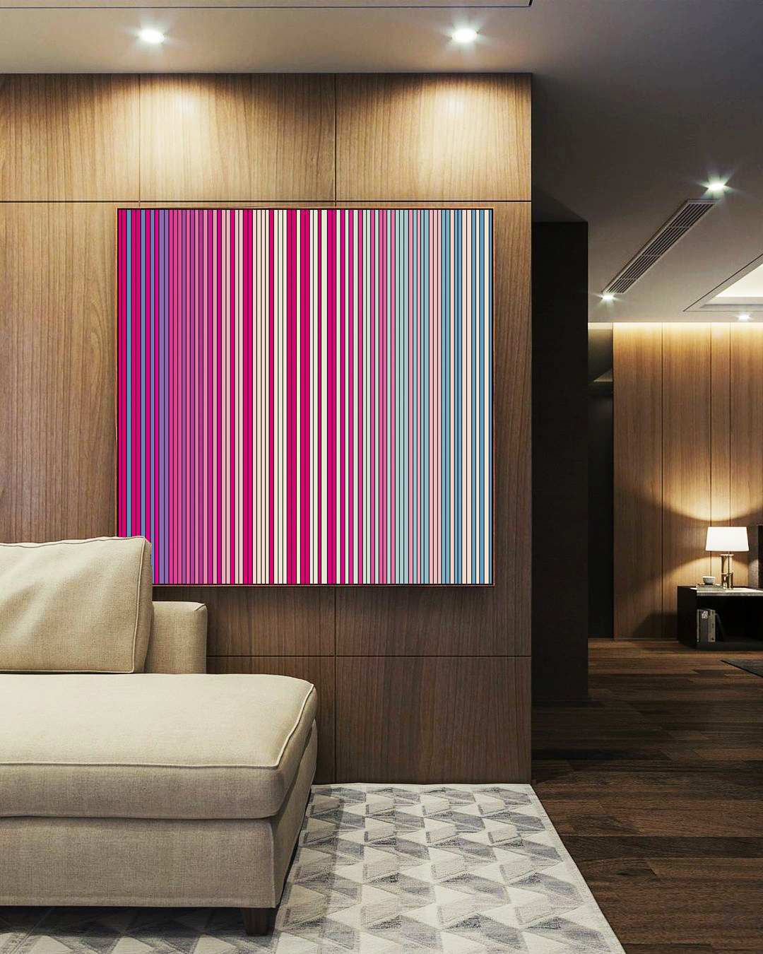 Com tons vibrantes de rosa, areia e azul, este Quadro Quadrado Abstrato em degradê cria um visual moderno e marcante.