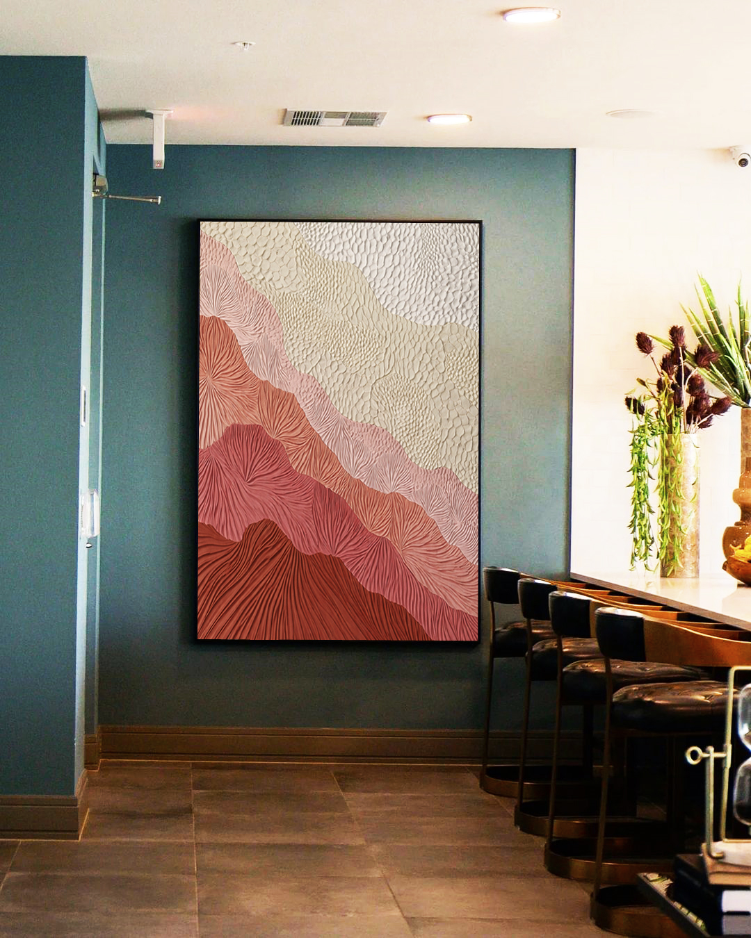 Texturas Delicadas e degradê em marfim e rosa salmão formam uma obra elegante e atual. Este Quadro Vertical, é a escolha certa para salas amplas, halls de entrada sofisticados ou escritórios, valorizando a decoração com suavidade e arte.