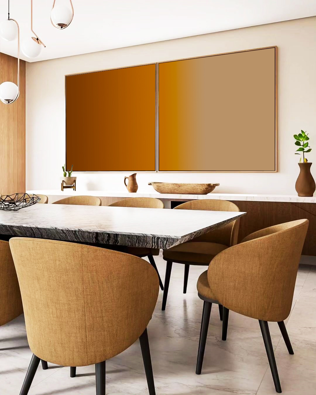 Tons de areia, bronze e cobre que trazem aconchego e sofisticação ao ambiente. Ideal para sala, quarto ou escritório, criando uma atmosfera moderna, quente e elegante. Lindíssimo!