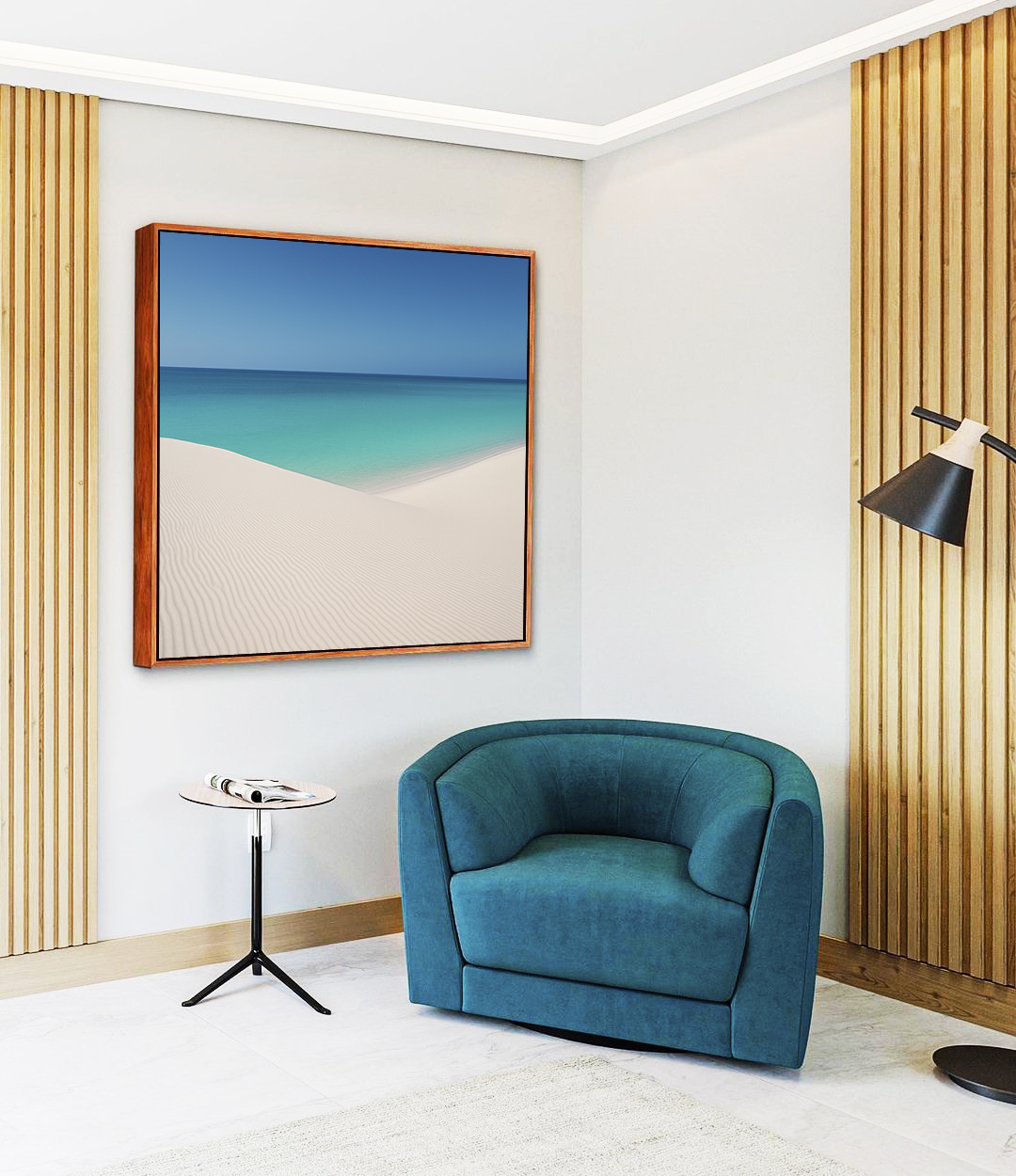 Sereno e sofisticado, este Quadro Quadrado retrata a harmonia entre céu azul, mar tranquilo, praia clara e dunas suaves. Ideal para valorizar salas refinadas, quartos elegantes, escritórios contemporâneos ou halls de entrada bem iluminados.