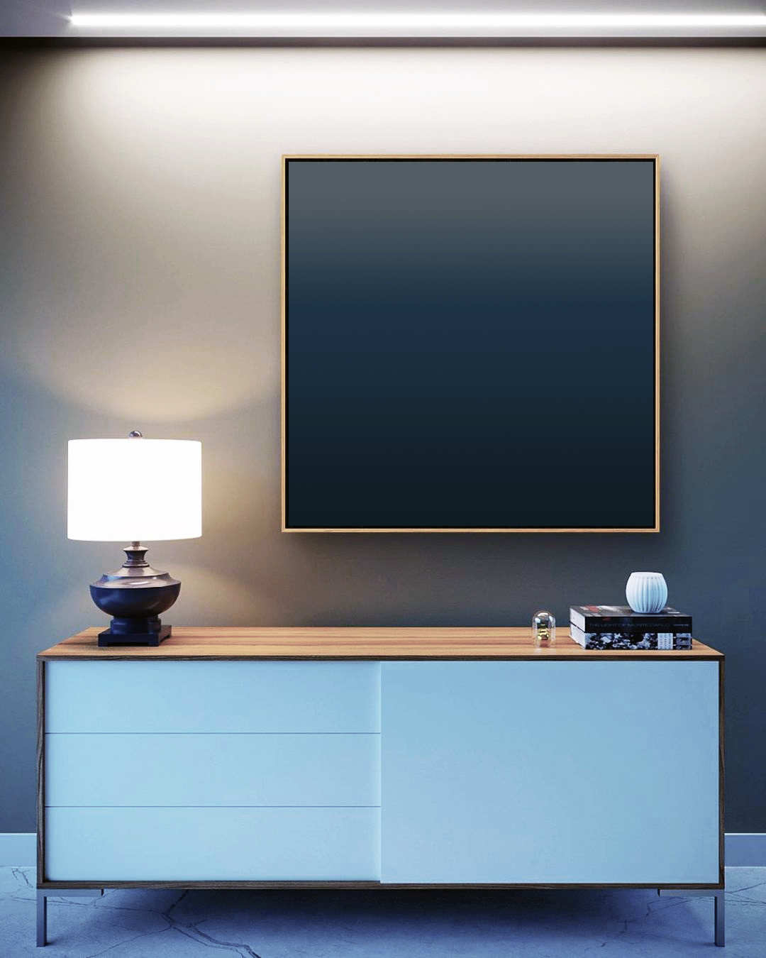 Quadro Quadrado Abstrato Degradê Azul Marinho Escuro Canvas Moldura