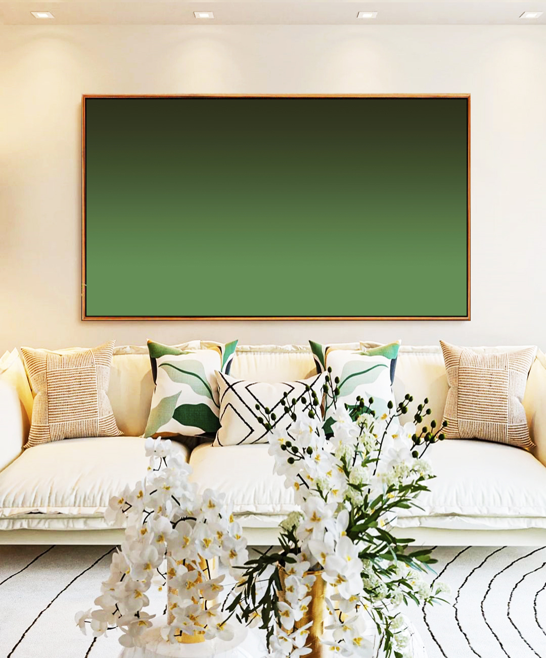 A transição suave de tons de verde escuro transmite equilíbrio e serenidade. Perfeita para salas de estar, dormitórios e ambientes contemporâneos que valorizam conforto visual e estética orgânica.