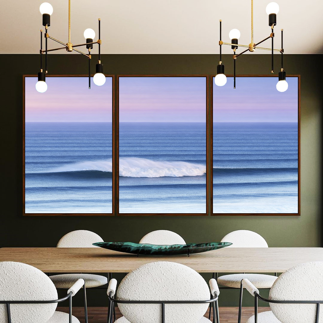 Com ondas delicadas e tons de azul profundo sob um céu lilás suave, esta obra transmite calma e elegância. O Trio de Quadros é ideal para decorar salas de estar, escritórios refinados ou quartos, criando um ambiente harmonioso e iluminado.