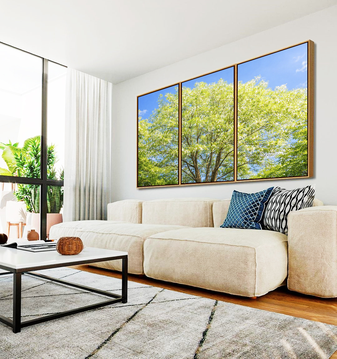 Este Trio de Quadros que retrata uma árvore em verde claro sob um céu azul suave, transmitindo leveza e conexão com a natureza. A escolha ideal para salas sofisticadas, quartos acolhedores ou halls de entrada iluminados.