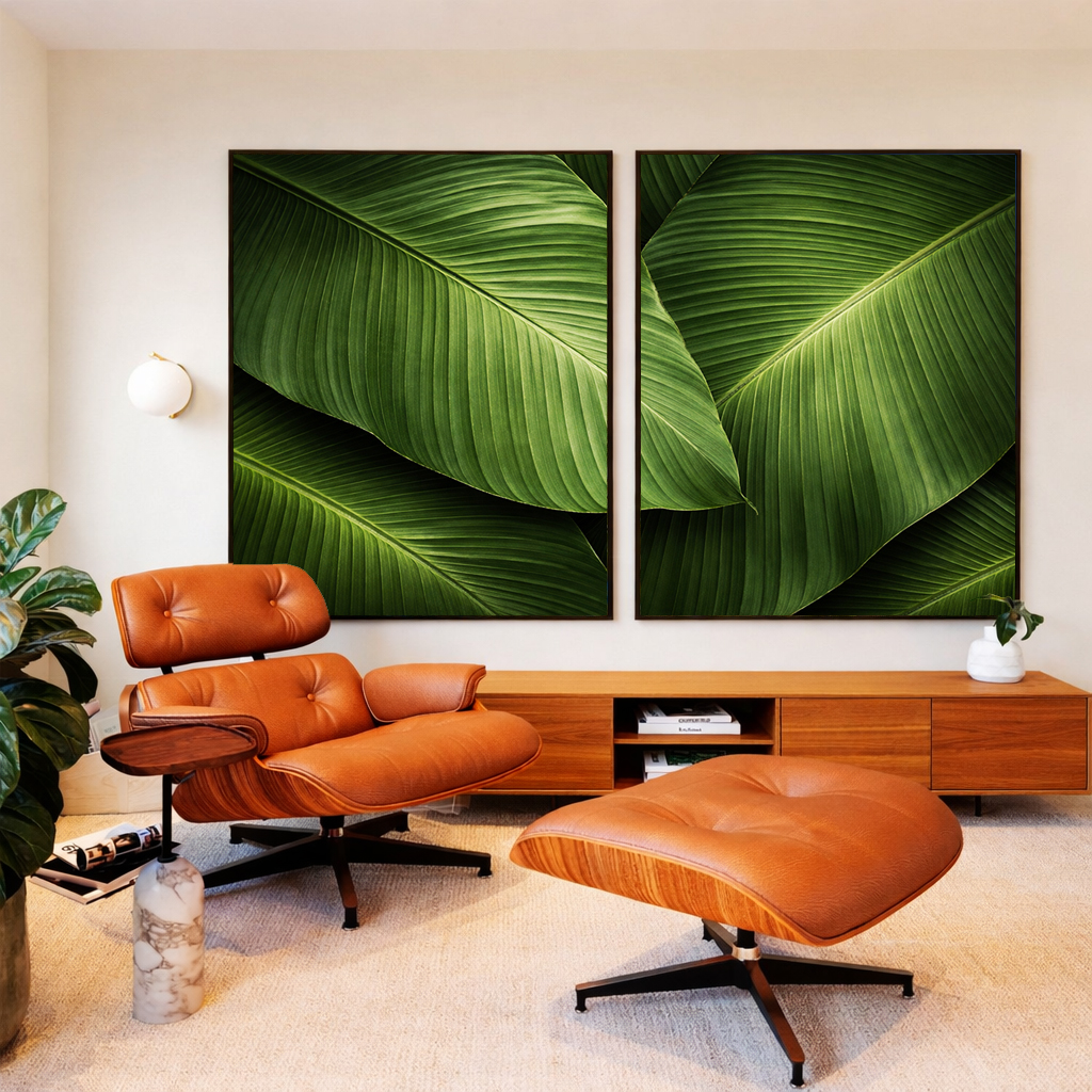 Duo de Quadros Folhagem Bananeira tropical Verde Natureza Canvas Moldura