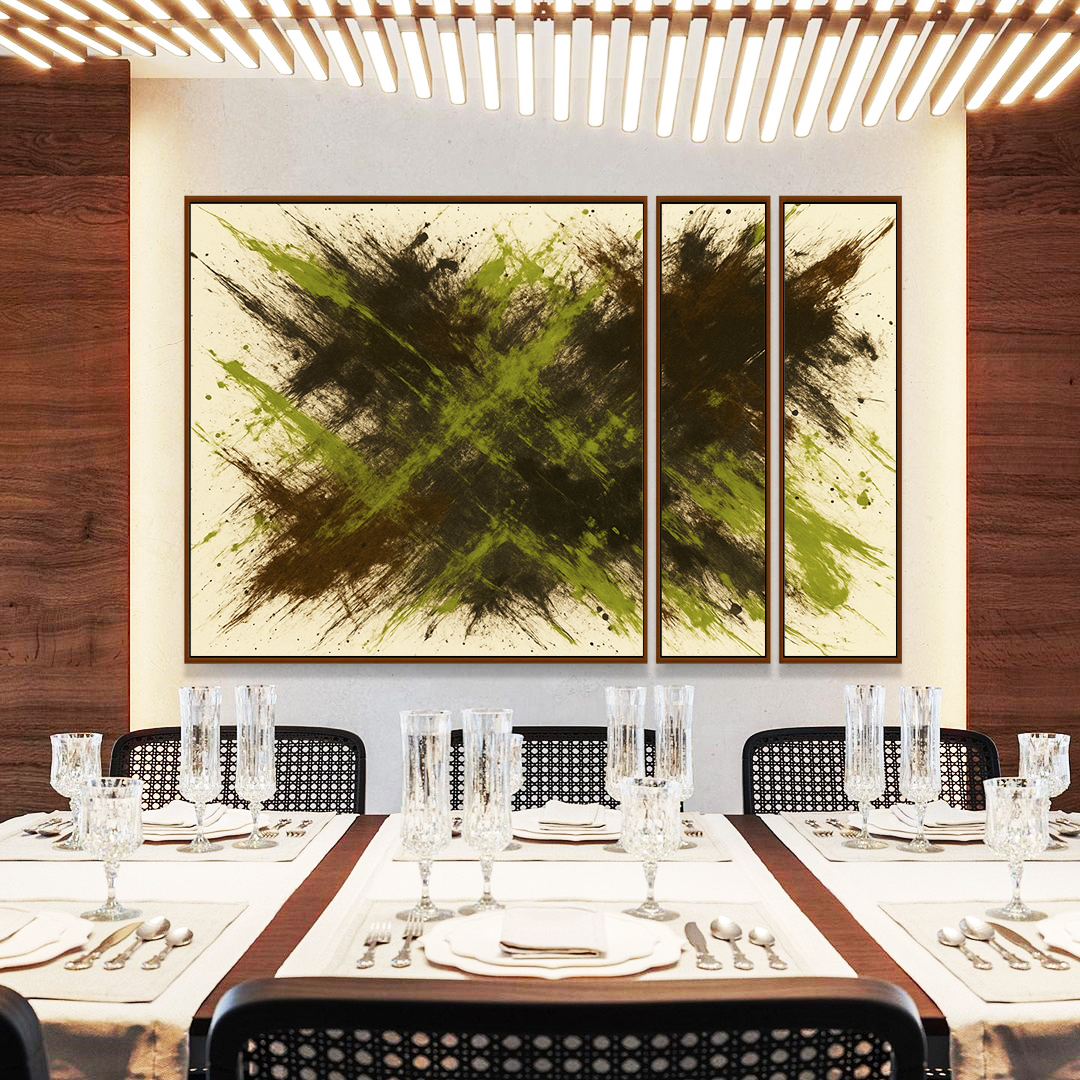 Este Trio de Quadros Estilizados combina nuances de verde pistache e marrom em um elegante efeito de pintura. A escolha certa para transformar salas, escritórios ou quartos, trazendo equilíbrio visual, modernidade e um toque artístico refinado.
