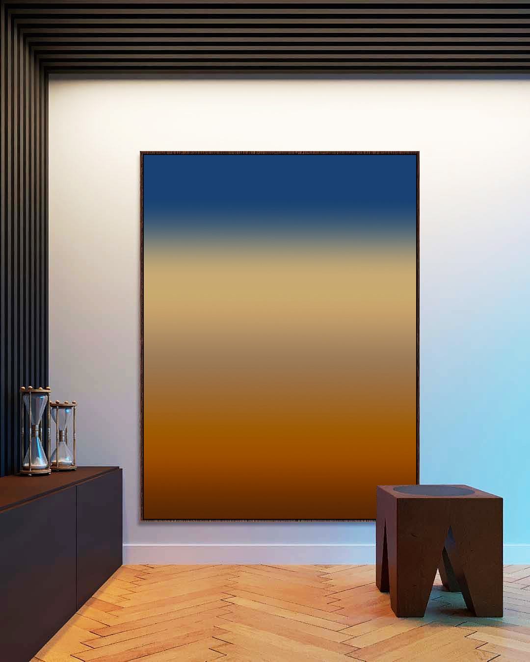 Degradê artístico em azul marinho profundo, marfim luminoso, marrom e cobre metálico. Estética moderna com sensação de elegância e aconchego. Perfeito para sala, quarto, escritório ou ambientes com decoração sofisticada e contemporânea.