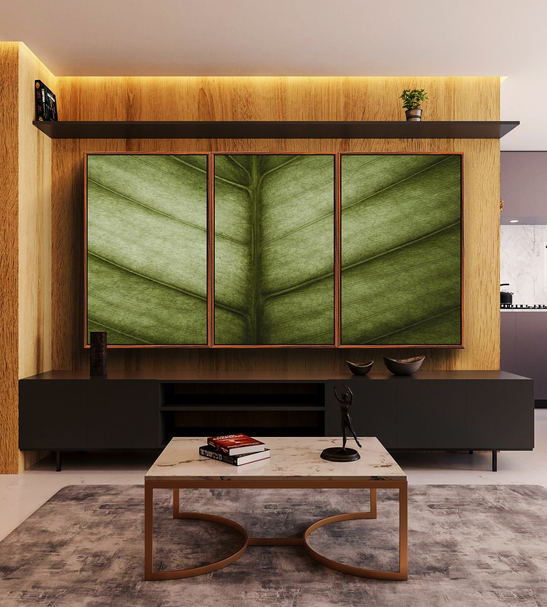Folha verde em destaque, com textura delicada e beleza natural que traz calma ao ambiente. Ideal para sala, quarto, escritório ou espaços que pedem frescor, leveza e conexão com a natureza.
