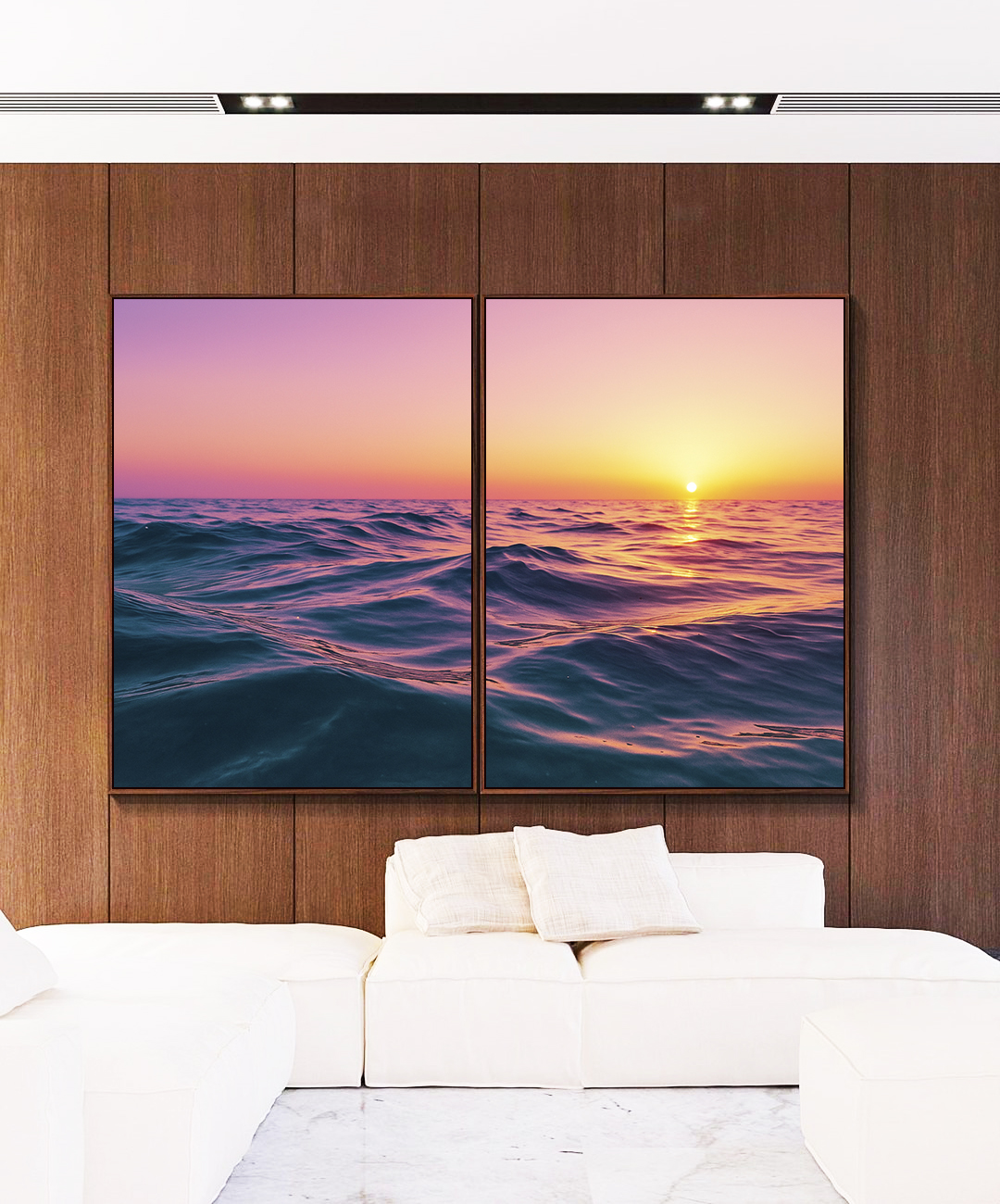 Com mar ondulado e céu em rosa e lilás, este Duo de Quadros transmite calma e encanto, oferecendo um toque de suavidade. A escolha perfeita para valorizar salas, quartos ou halls de entrada com uma paisagem moderna, luminosa e relaxante.