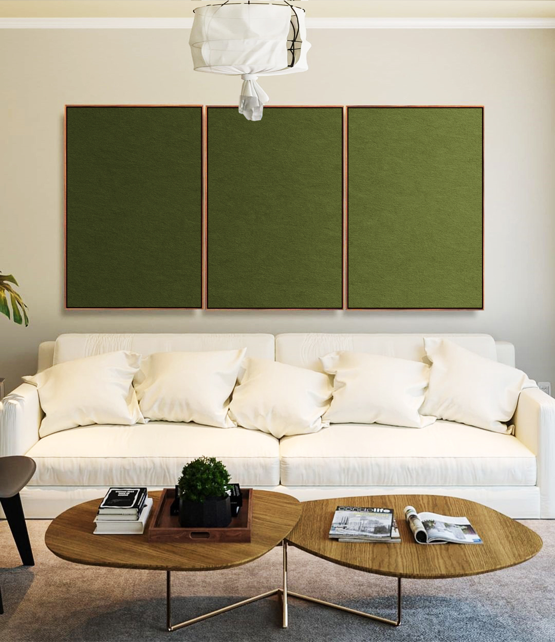 Refinado e envolvente, este Trio de Quadros com degradê verde oliva transforma o ambiente com sutileza e estilo. Ideal para decorar salas de estar elegantes, quartos aconchegantes, escritórios sofisticados ou halls de entrada imponentes.