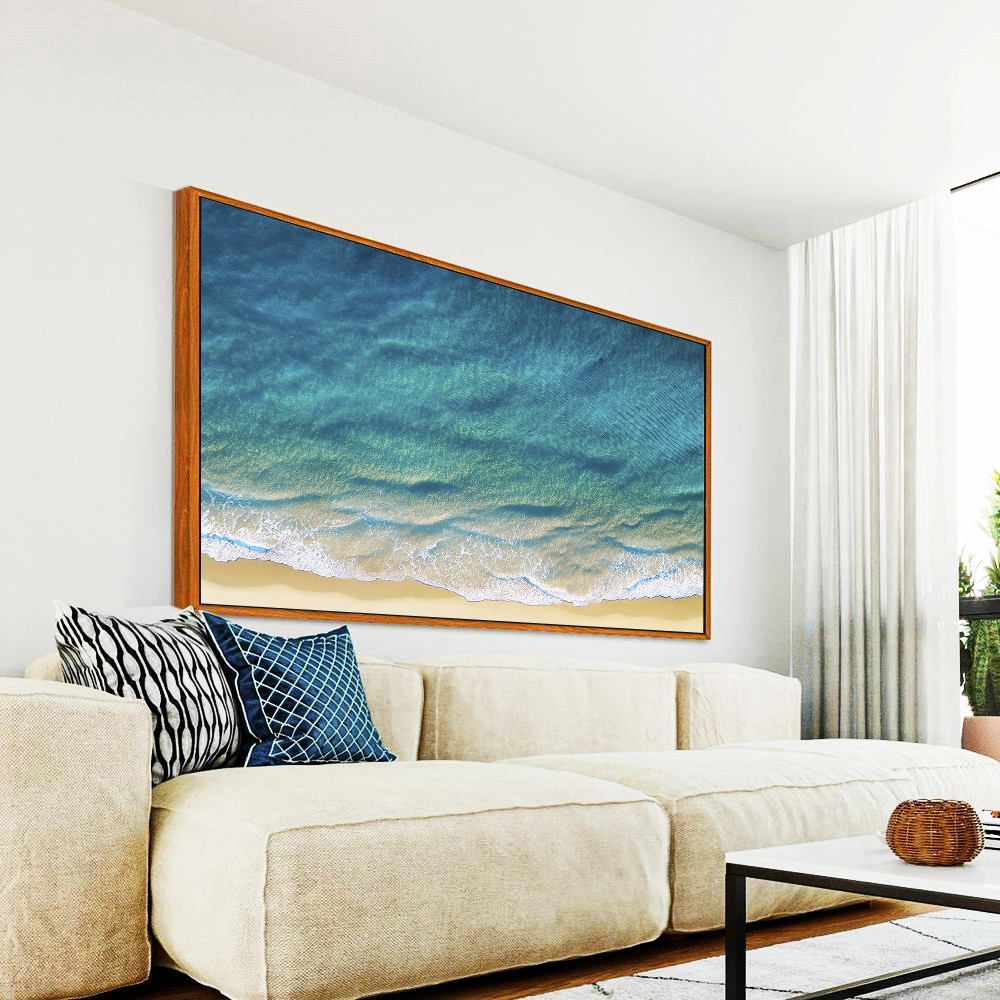 Com tons naturais e mar azul calmo, este Quadro Horizontal transforma o ambiente com frescor e sofisticação. Ideal para compor salas contemporâneas, quartos elegantes, escritórios profissionais ou halls de entrada marcantes.