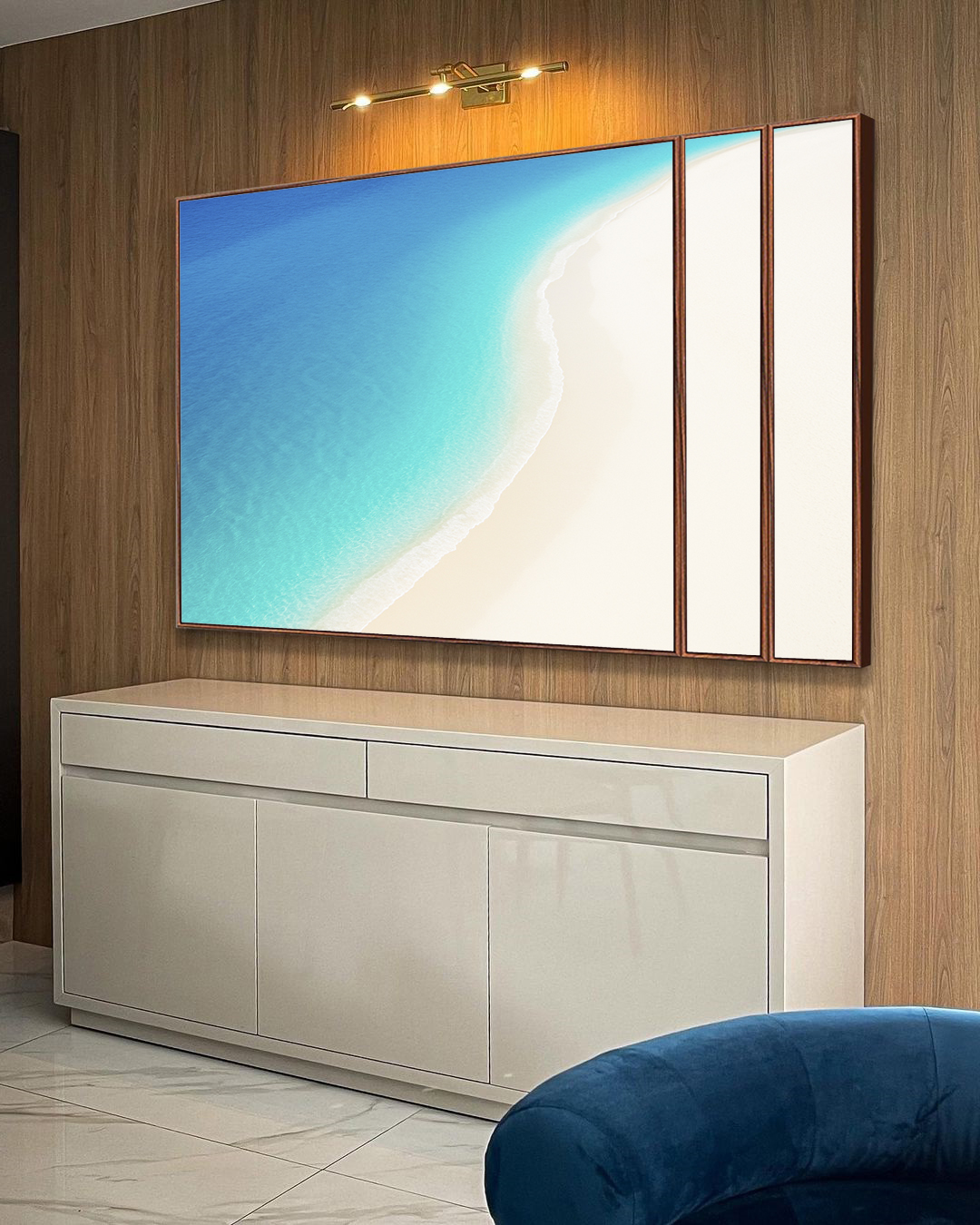 Este Trio de Quadros Estilizados combina mar azul tranquilo e praia de areia branca natural e elegante. A escolha ideal para salas contemporâneas, quartos sofisticados ou halls de entrada, trazendo serenidade e bem-estar ao espaço.