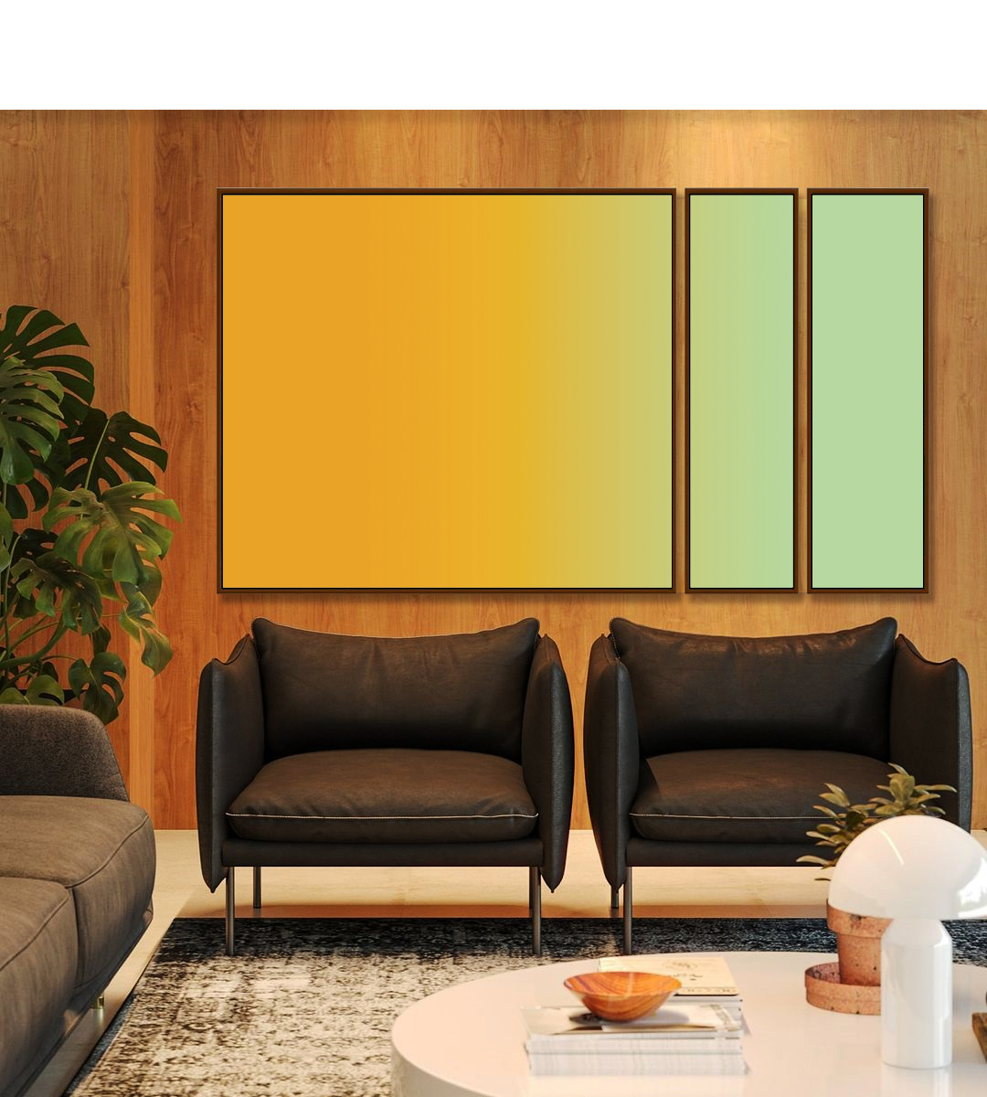 O degradê sofisticado em amarelo ouro e verde menta torna este Trio de Quadros Estilizados uma escolha impactante. Com Moldura Moderna, ele valoriza sua decoração, trazendo elegância para a Sala de Estar, Quarto, Escritório ou Hall de Entrada.