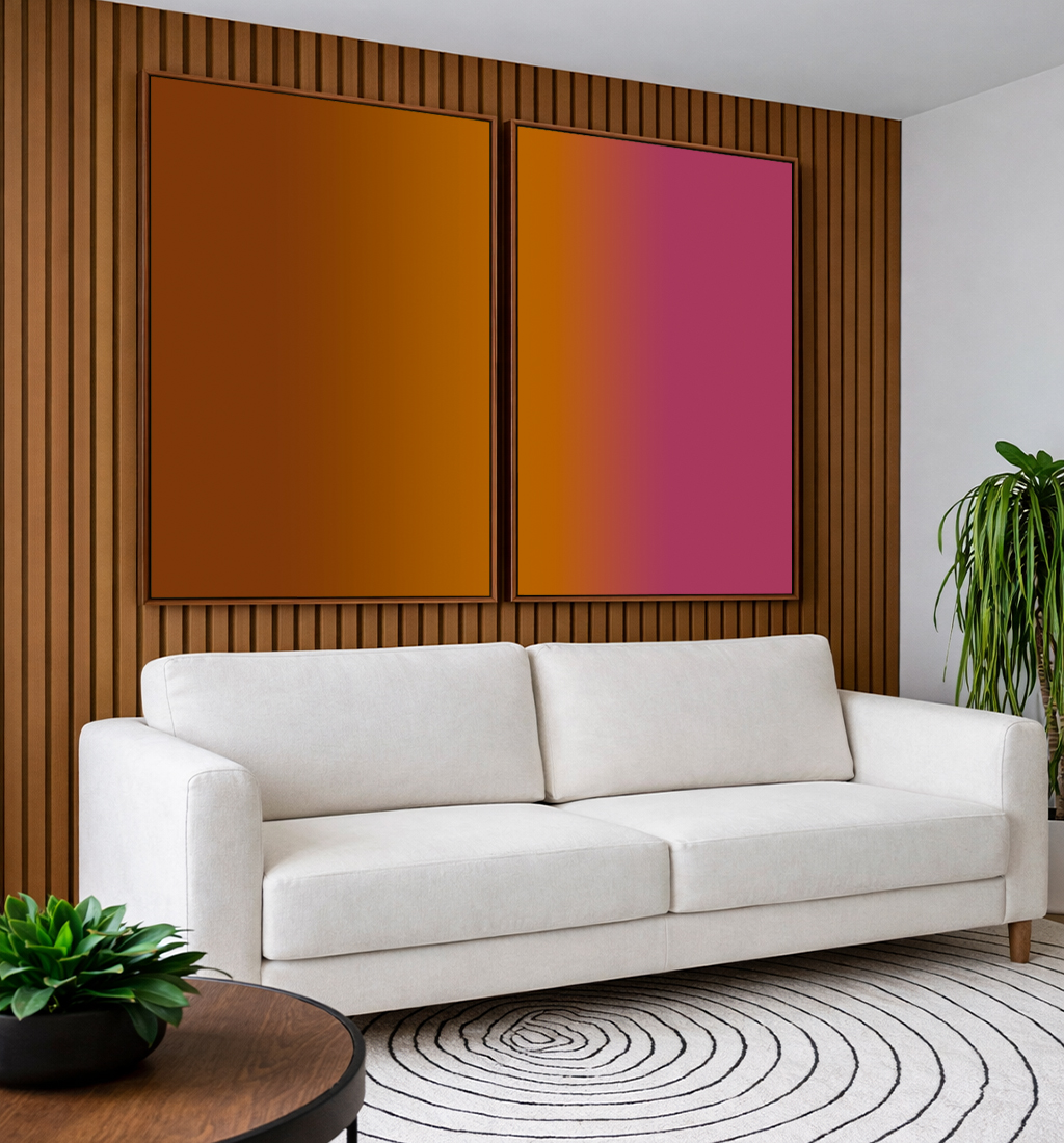 Duo de Quadros Abstrato Degradê Rosa Vinho Marrom Caramelo Canvas Moldura