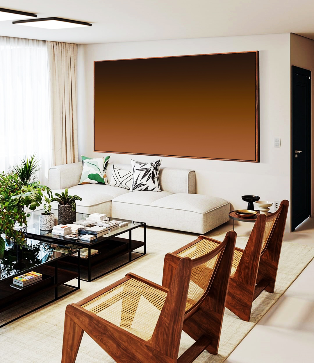 Tons profundos e quentes que criam uma atmosfera acolhedora e sofisticada. Combina com madeira, decoração natural e interiores minimalistas com personalidade. Salas, Quartos ou Escritórios, mais aconchegantes.