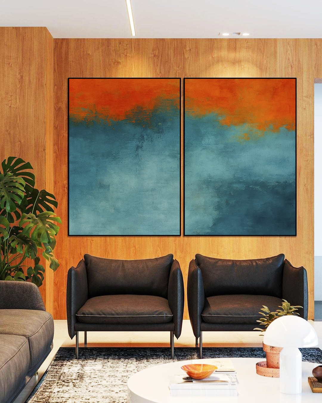 Crie impacto visual com este Duo de Quadros Abstrato, unindo laranja e azul petróleo em efeito concreto. Moldura Moderna valoriza cada peça. Perfeito para decorar sua Sala, Quarto ou Escritório, trazendo sofisticação e harmonia ao ambiente.