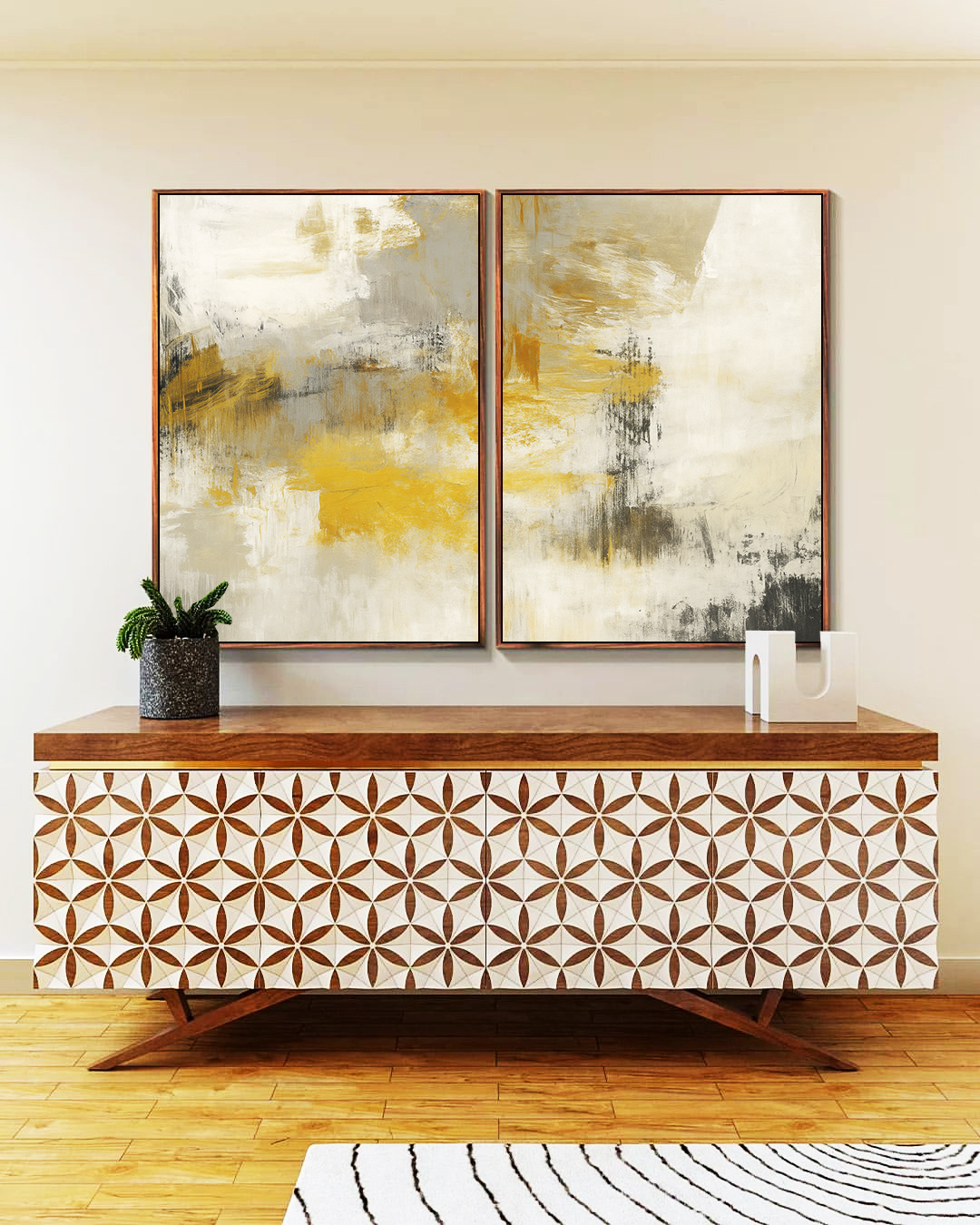 Com traços abstratos e tons de cinza e mostarda, este Duo de Quadros transforma qualquer espaço com elegância e personalidade. A escolha certa para decorar sua sala de estar, quarto ou hall de entrada com arte, estilo e sofisticação. Marcante!
