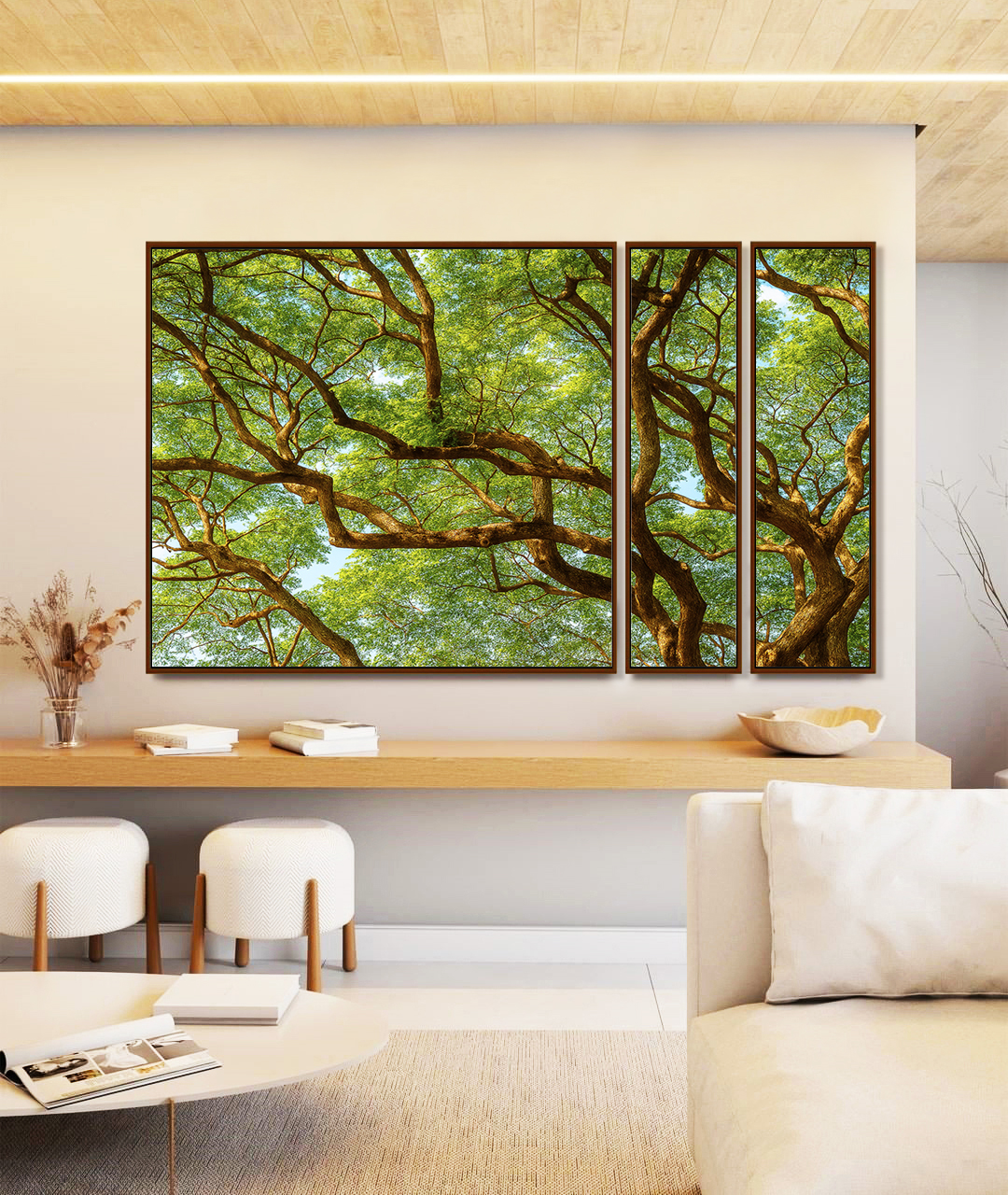 A serenidade da natureza se destaca neste Trio de Quadros Estilizados, que retrata a copa de uma árvore com detalhes envolventes. Perfeito para decorar salas, escritórios ou halls com equilíbrio e elegância. Lindo e impactante!
