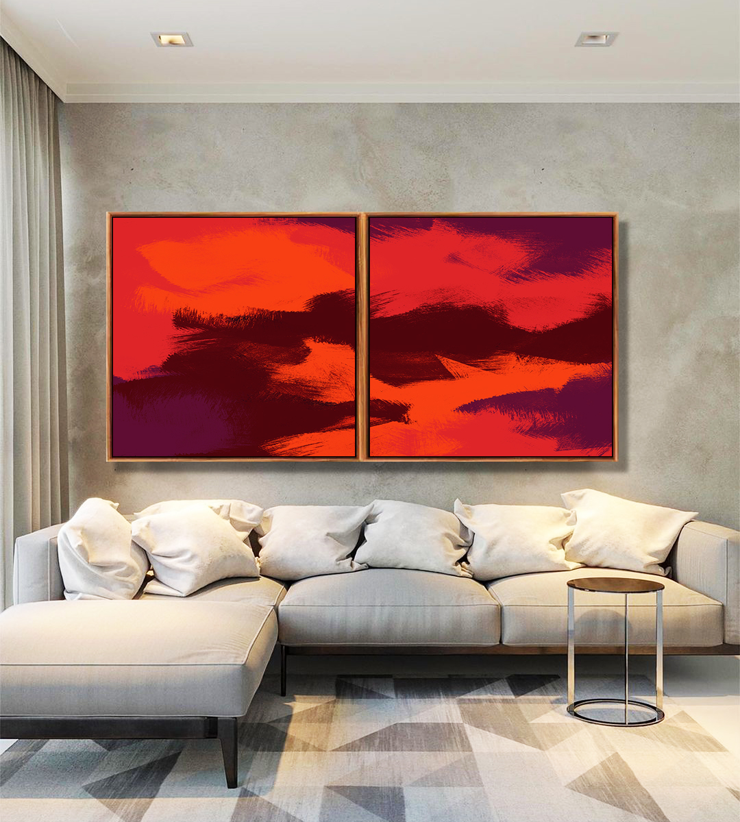 Tons intensos e contrastantes ganham vida neste Duo de Quadros Quadrados, que combina elegância e expressividade. Sua arte marcante transforma o ambiente. A escolha certa para quem busca modernidade em salas, quartos ou halls de entrada.