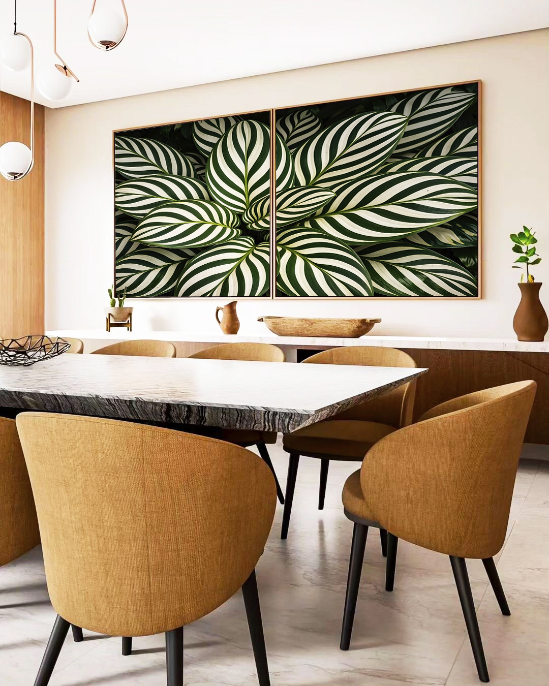 Natural e marcante, este Duo de Quadros Quadrados com calatheas em destaque cria ponto focal elegante e conexão com a natureza ao ambiente. Ideal para compor salas modernas, quartos elegantes ou halls de entrada de destaque.