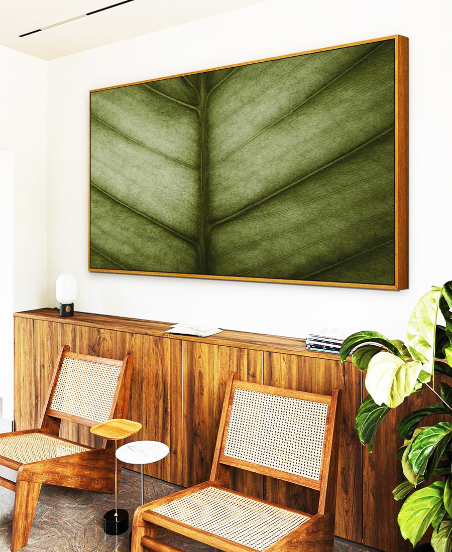 Folha verde em destaque, com textura delicada e beleza natural que traz calma ao ambiente. Ideal para sala, quarto, escritório ou espaços que pedem frescor, leveza e conexão com a natureza.