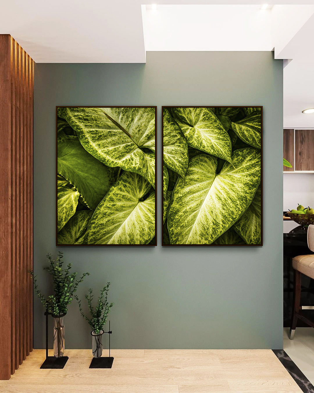 Duo de Quadros Planta Folha Verde Claro Vivo Natureza Canvas Moldura