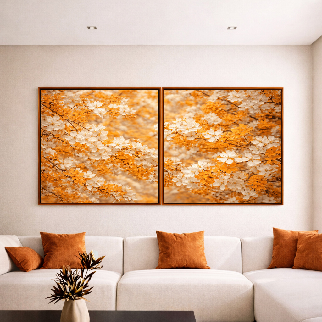 Os tons dourados da cerejeira em flor transformam a decoração com charme, luz e suavidade. Uma escolha sofisticada para salas de estar, quartos elegantes, escritórios contemporâneos ou halls de entrada acolhedores.
