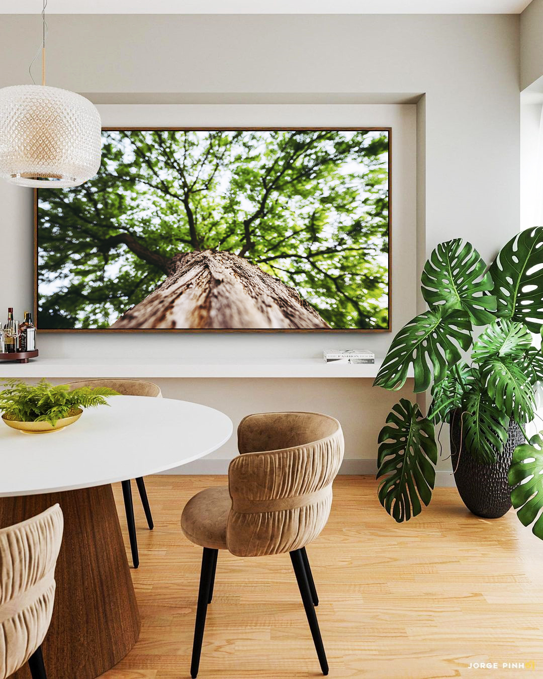 Com folhagem verde vibrante e tronco imponente, este Quadro Horizontal é a escolha ideal para salas, quartos ou halls de entrada. Transmite frescor, serenidade e um toque natural sofisticado, trazendo equilíbrio e elegância ao ambiente.