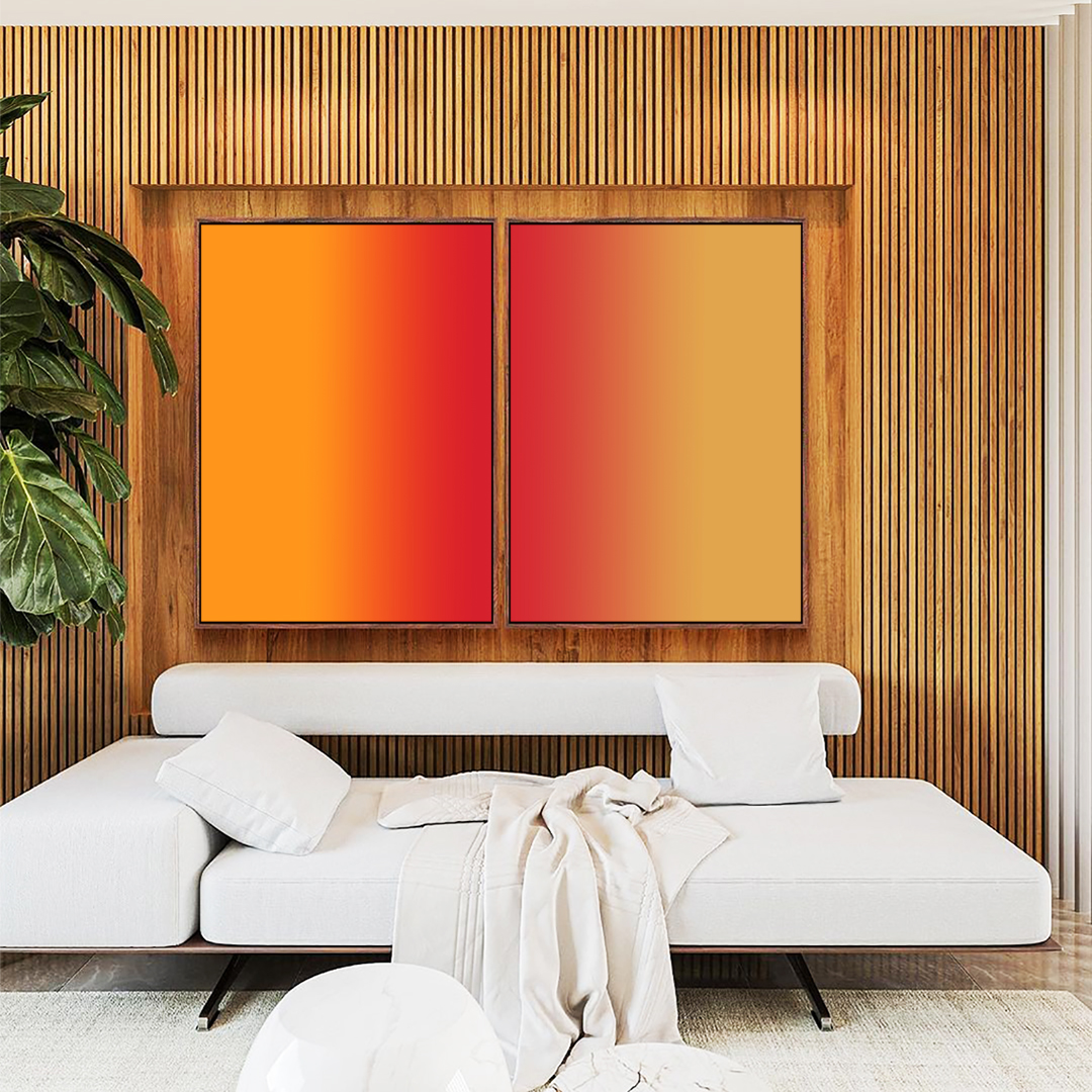 Duo de Quadros abstrato com degradê em tons de amarelo âmbar e coral, criando calor, movimento e sofisticação. A escolha ideal para salas, quartos, escritórios ou halls de entrada, iluminando o ambiente com elegância contemporânea.