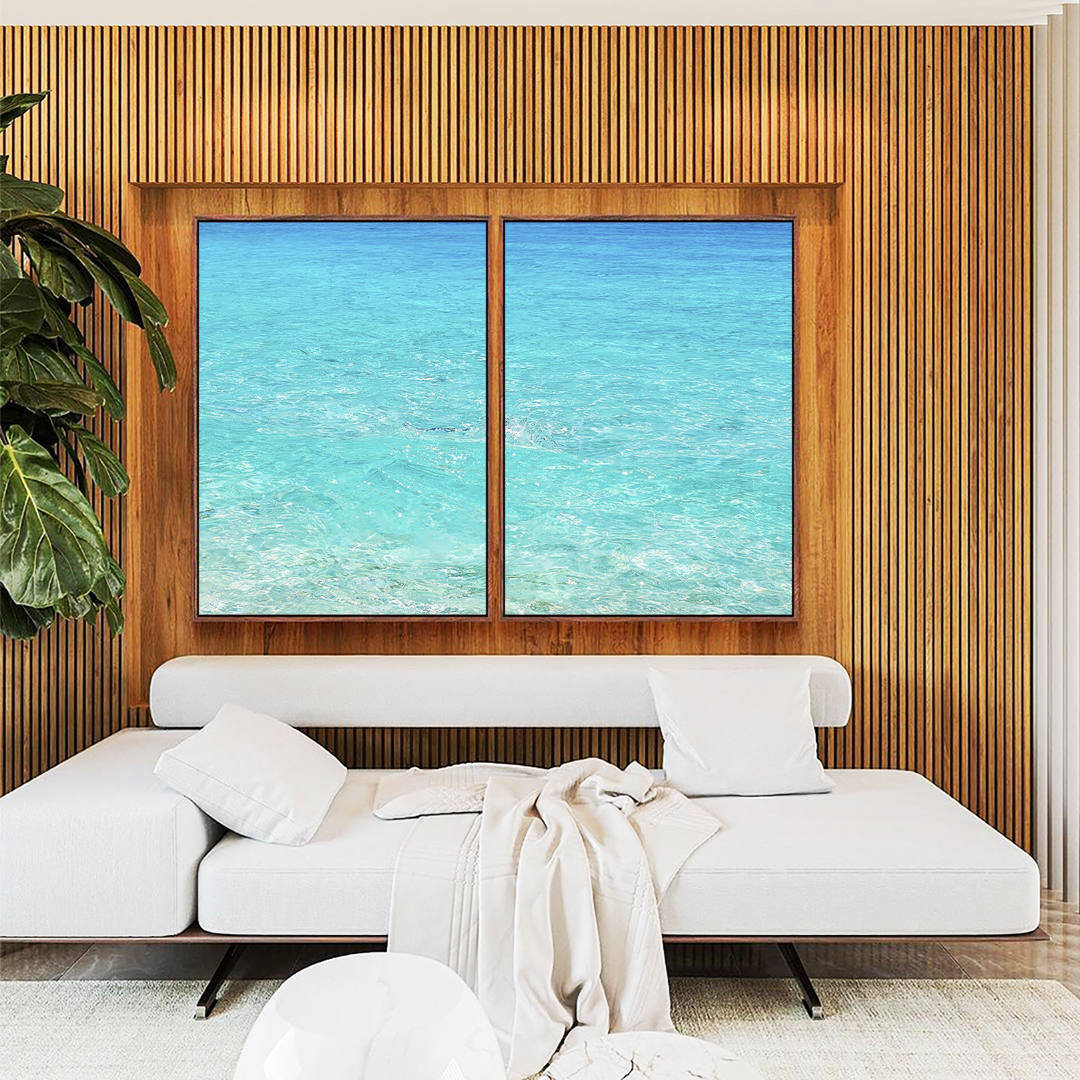 Mar azul de águas paradisíacas cria uma atmosfera de leveza e descanso visual. Ideal para salas, quartos e ambientes que buscam sensação de férias, tranquilidade e conexão com a natureza.