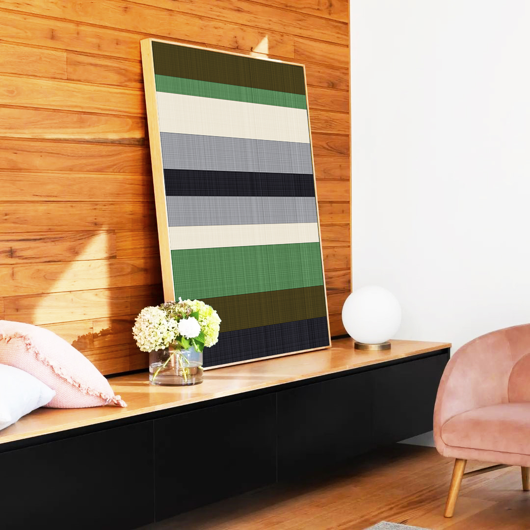 Com listras geométricas em tons de verde, cinza e branco, este Quadro Vertical expressa equilíbrio e sofisticação. A escolha ideal para compor salas modernas, escritórios elegantes ou halls de entrada com personalidade e harmonia visual.