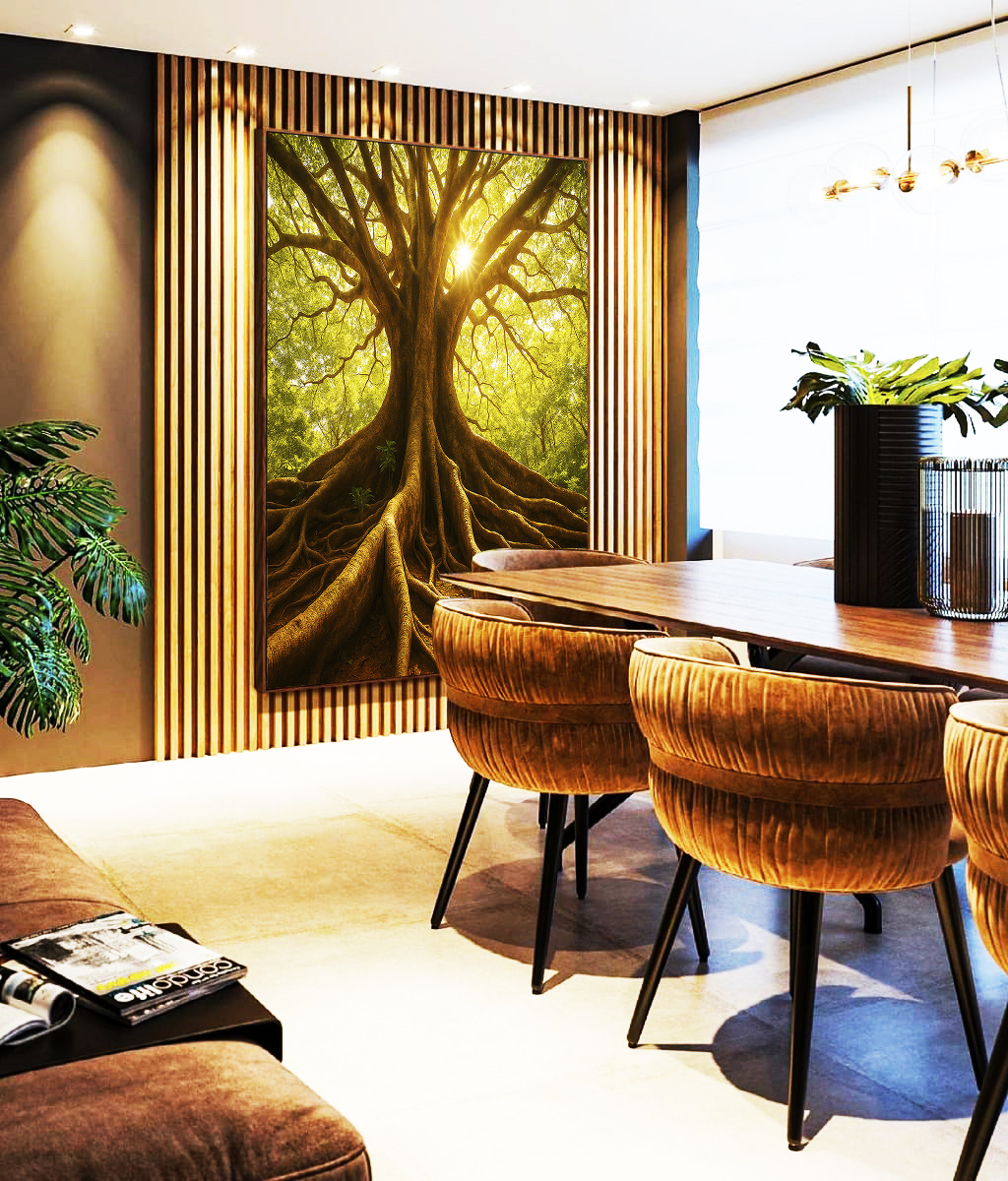 Este Quadro Vertical se destaca pela beleza serena da natureza. O verde das folhas e o contraste da paisagem criam harmonia visual e leveza. Ideal para sala, quarto ou hall de entrada, trazendo frescor e sofisticação ao seu ambiente.