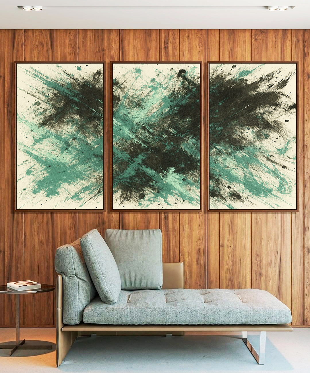 O Trio de Quadros abstrato em verde menta e cinza chumbo com efeito pintura leva frescor e estilo para o ambiente. Moldura moderna valoriza cada detalhe. Ótimo para salas amplas, quartos elegantes, escritórios sofisticados ou halls de entrada.
