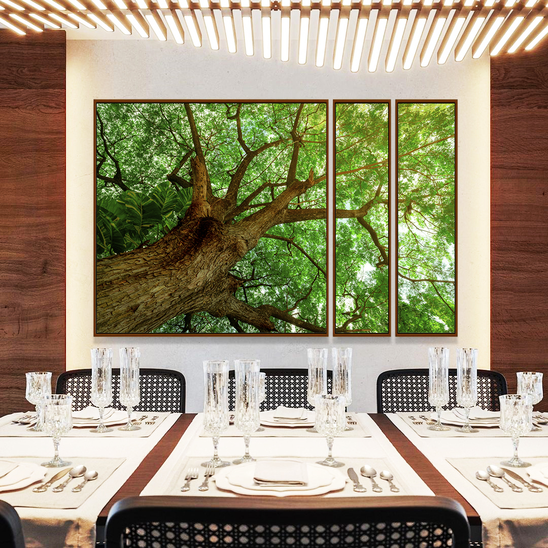A força da natureza em forma de arte! Este Trio de Quadros Estilizados de copas de árvores em verdes intensos dá vida a salas amplas, escritórios elegantes e quartos sofisticados. Moldura flutuante moderna e impressão em canvas de qualidade.