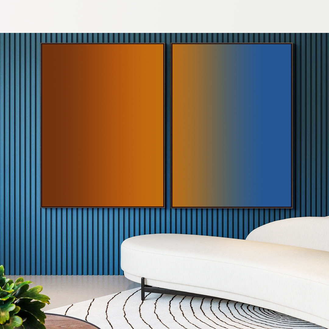Tons marrom terra, cobre e azul em degradê suave criam um visual contemporâneo cheio de elegância. Ideal para salas, quartos, escritórios ou hall. Perfeito para decoração sofisticada, interiores modernos e ambientes com estilo refinado.