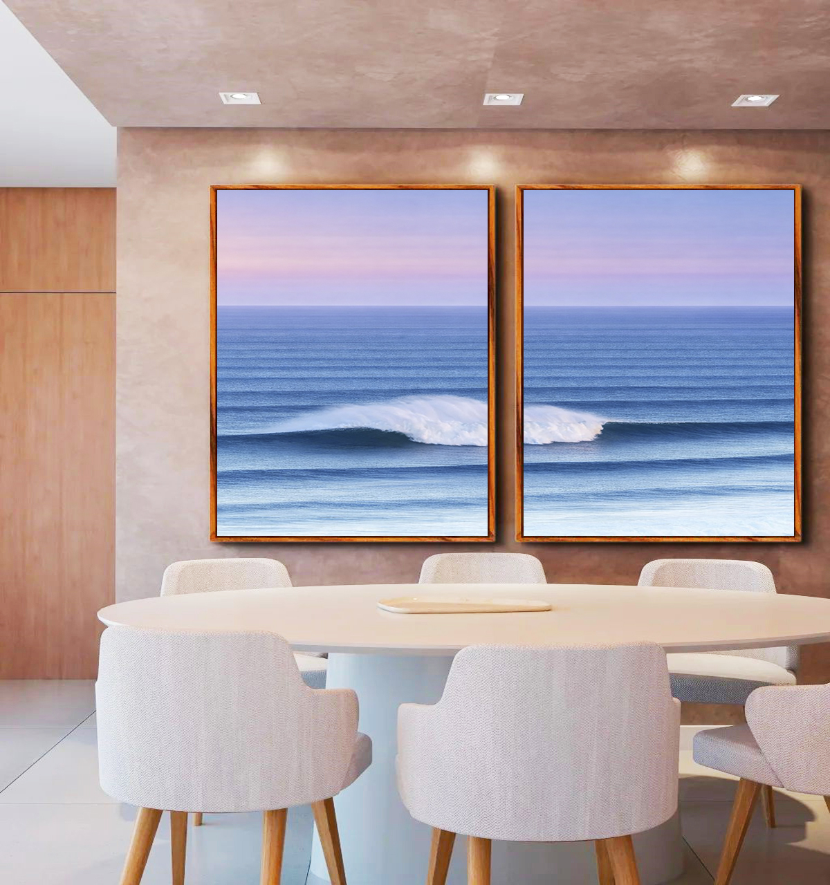 Com ondas delicadas e tons de azul profundo sob um céu lilás suave, esta obra transmite calma e elegância. O Duo de Quadros é ideal para decorar salas de estar, escritórios refinados ou quartos, criando um ambiente harmonioso e iluminado.