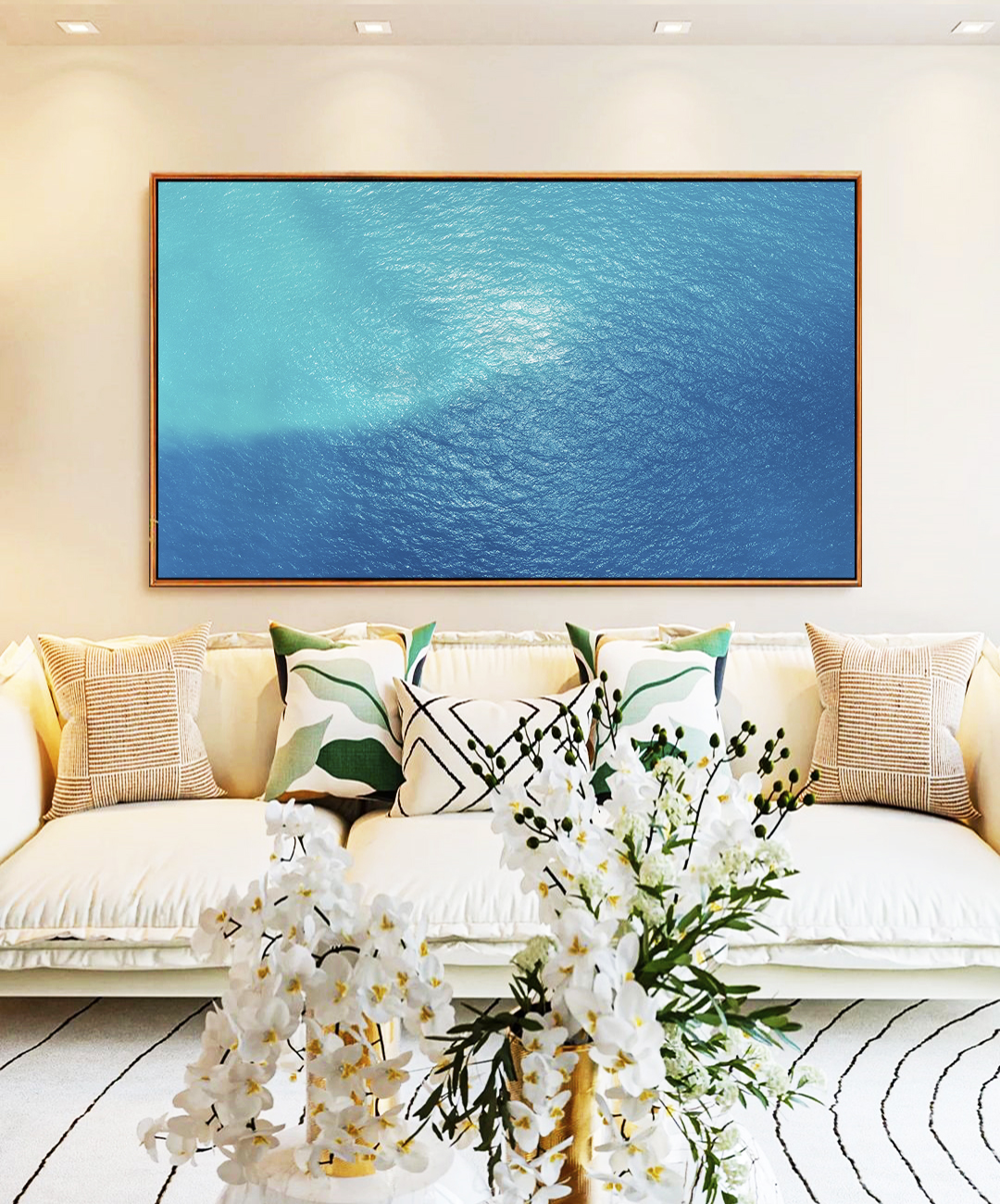 Profundo e expressivo, este Quadro Horizontal retrata o mar alto em azul intenso com textura natural, criando impacto visual e movimento elegante. Ideal para valorizar salas amplas, quartos sofisticados ou escritórios profissionais.