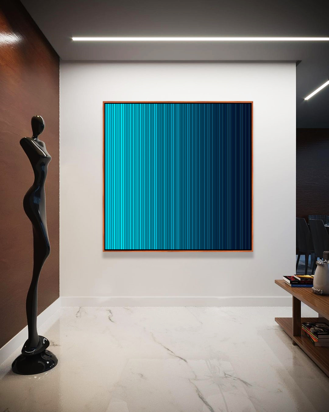 Sofisticado e atual, este Quadro Quadrado em azul degradê com listras abstratas cria um ponto focal elegante e equilibrado. Ideal para compor salas refinadas, quartos estilosos, escritórios contemporâneos ou halls de entrada imponentes.