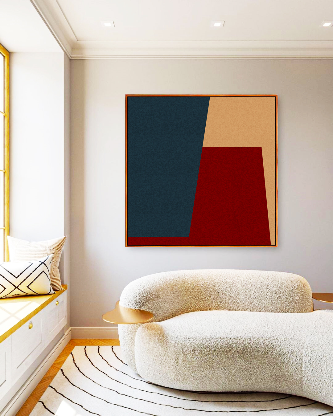 Este Quadro Quadrado abstrato minimalista combina tons de azul e vermelho em linhas geométricas modernas, despertando sofisticação e estilo. A escolha ideal para decorar sua sala, quarto ou escritório, trazendo charme e personalidade.