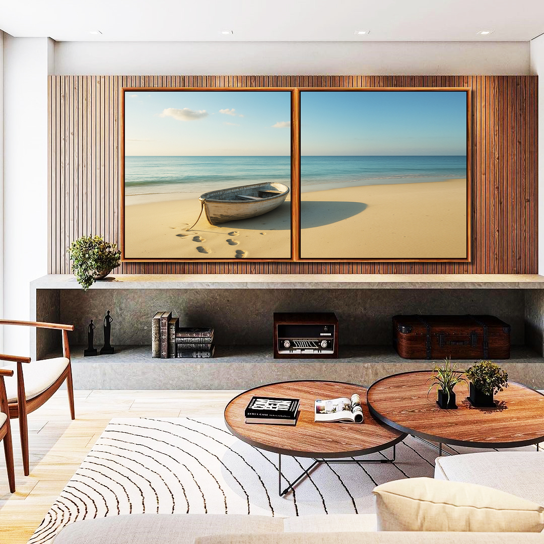 Este Duo de Quadros Quadrados traz a serenidade do mar azul e o encanto de um barco sob céu claro. Perfeito para iluminar sua Sala, Escritório ou Quarto com paz, elegância e a energia revigorante da Natureza. Moldura Flutuante Sofisticada.