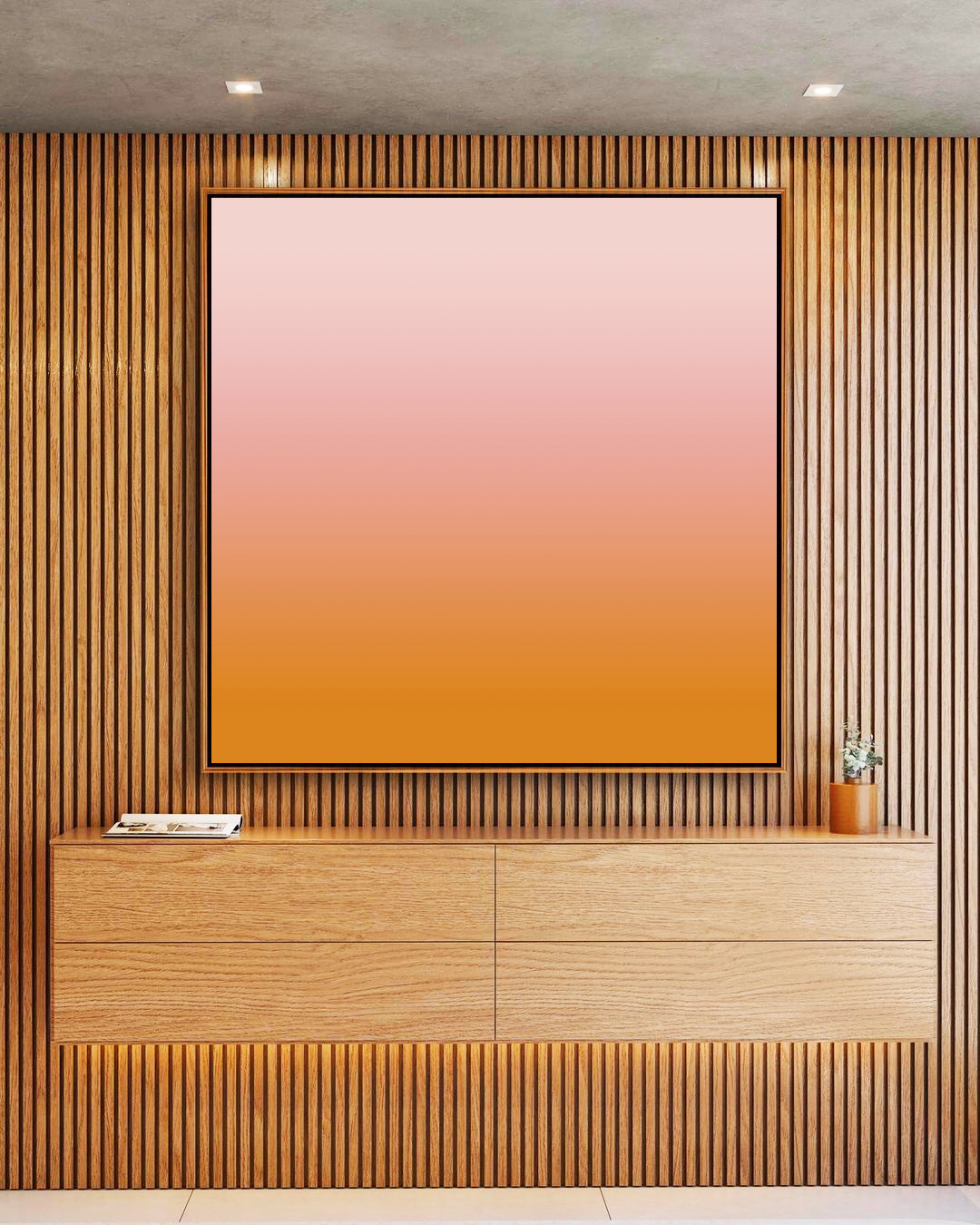 Este Quadro Quadrado abstrato em degradê coral e marfim adiciona personalidade e sofisticação ao ambiente. Ideal para sala, escritório ou quarto, com moldura moderna que valoriza cada detalhe, proporcionando elegância, frescor e charme à decoração.