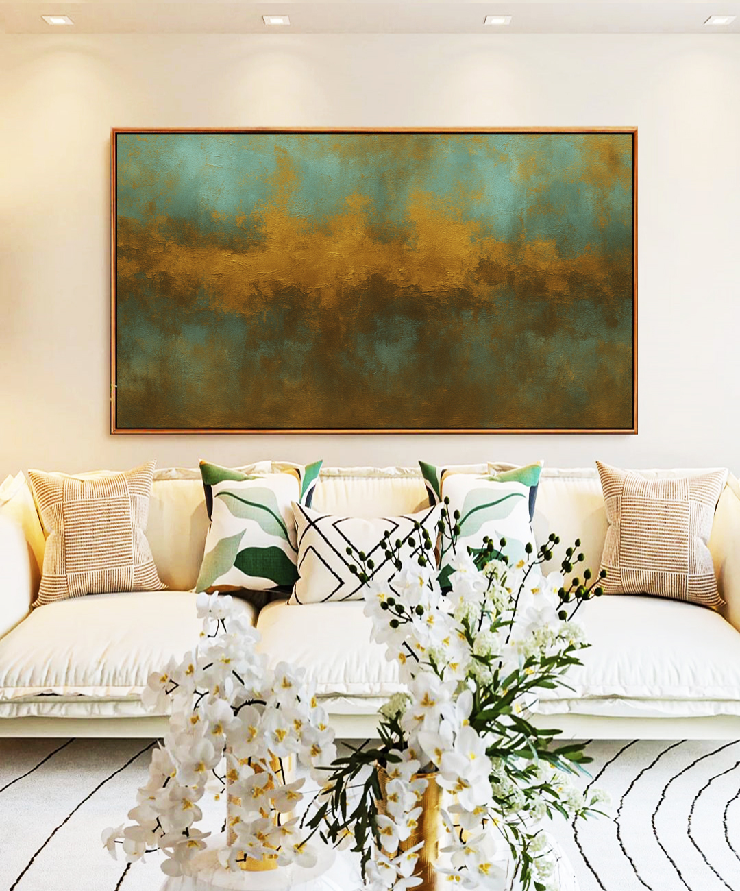 Este Quadro Horizontal Abstrato apresenta tons terrosos de verde, marrom e dourado, criando uma atmosfera elegante e acolhedora. A escolha certa para salas modernas, quartos sofisticados, escritórios elegantes ou halls amplos. Belíssimo!