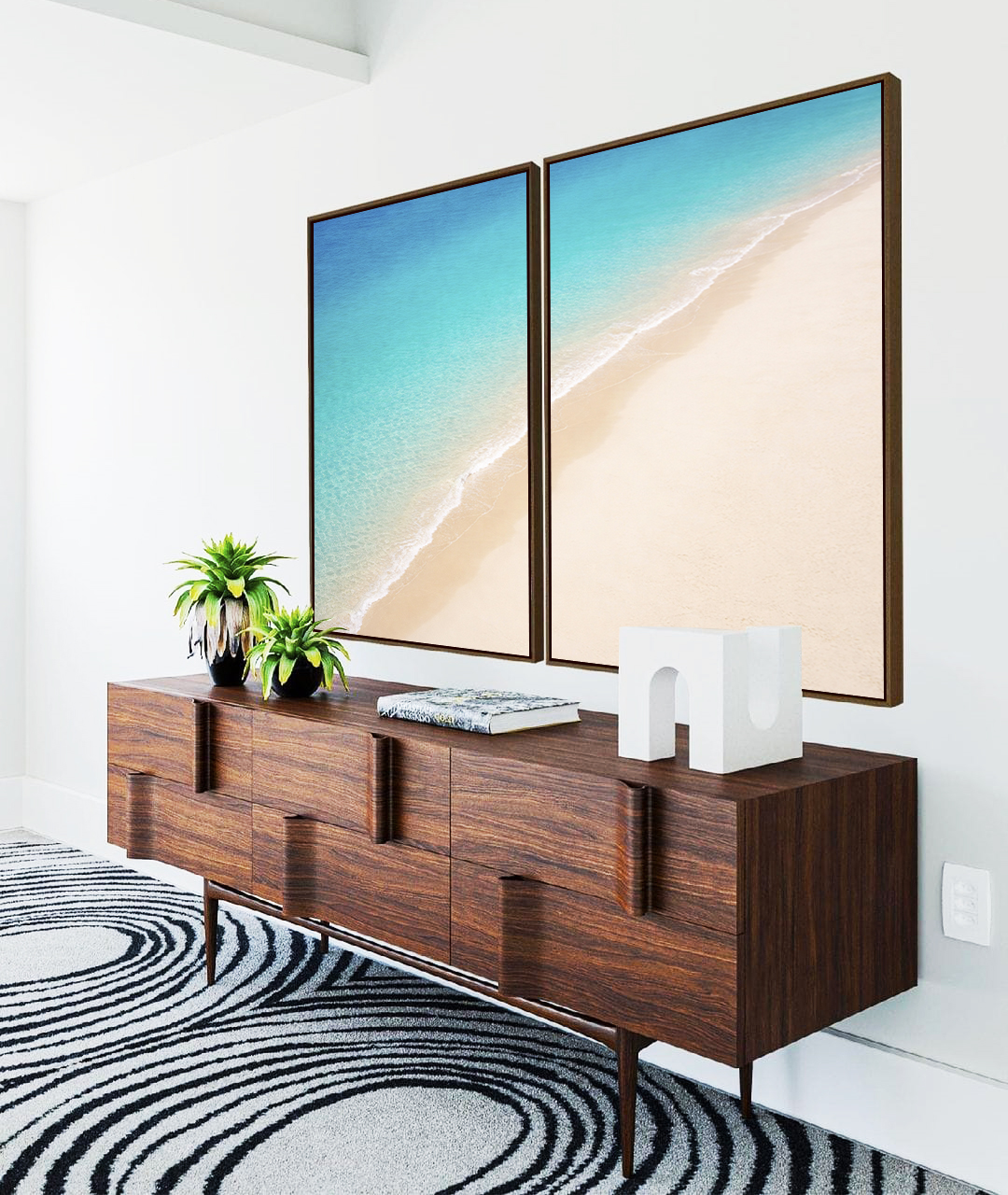 Duo de Quadros Praia Areia Branca Mar Azul Relaxante Canvas Moldura