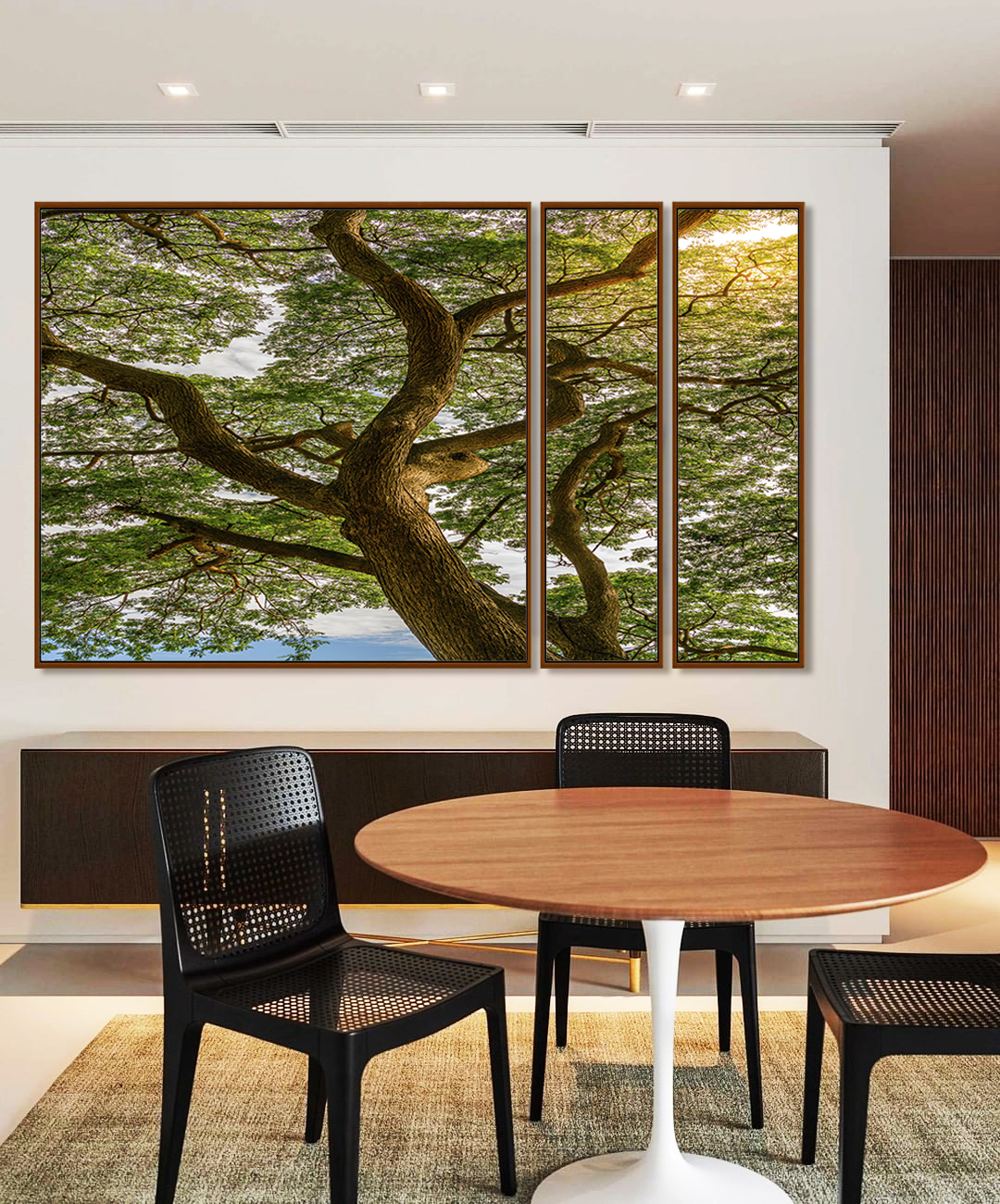 Leve e harmonioso, este Trio de Quadros Estilizados de paisagem natural com folhas verdes cria um ponto focal sereno e sofisticado. Ideal para compor salas amplas, quartos refinados, escritórios elegantes ou halls de entrada imponentes.