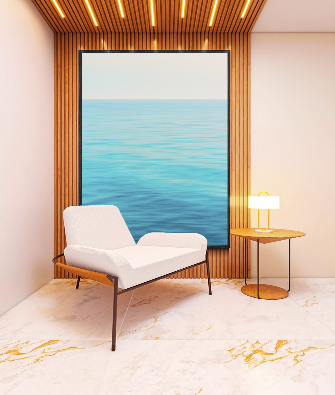 Deixe a serenidade do oceano invadir seu ambiente com este Quadro deslumbrante. O Quadro Vertical expressa calma e elegância através do azul cristalino do mar, sendo perfeito para decorar salas, halls ou quartos com beleza natural e requinte.